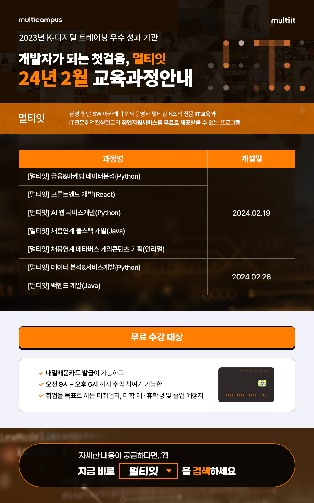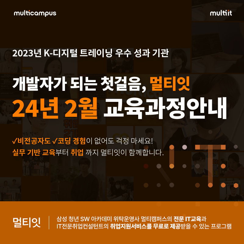 - [멀티캠퍼스] 24년 2월 IT취업지원교육 일정안내(K-디지털트레이닝)