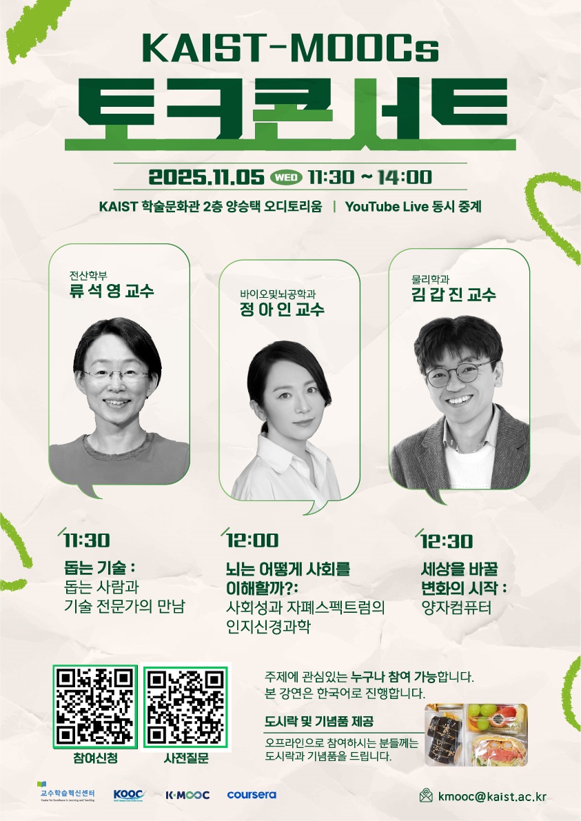 - 한국과학기술원 2025년 2학기 K-MOOC 강좌 수강 및 토크콘서트 안내