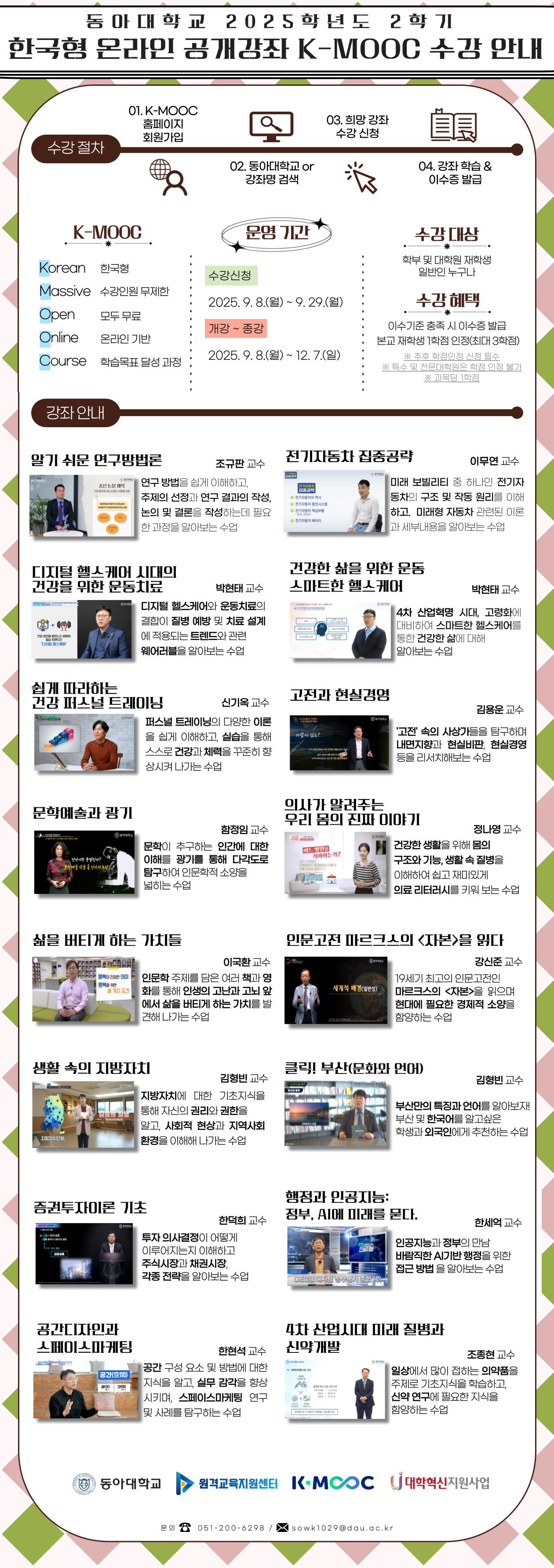 - 동아대학교 2025년 2학기 K-MOOC 강좌 수강 안내